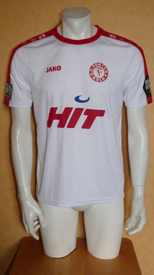Hier präsentiere ich das vorbereitete Trikot aus der 2.Runde des DFB-Pokals. Die Sportfreunde empfingen Bayer Leverkusen in der heimischen Arena. Es wurde ein ebenbürtiger Fight geliefert und die Leverkusener zogen im Elfmeterschießen den Kürzeren. Was für ein Spiel!
