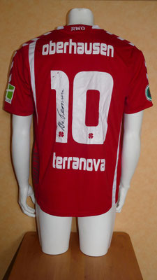Ein weiteres Trikot von unserem Fußballgott Mike Terranova. Es wurde in mehreren Spielen in der 3.Liga getragen. RWO spielte in den meisten Spielen in dem roten Heimtrikot. Es ist kaum möglich zu sagen, in welchem Spiel es wirklich getragen wurde. Aber bei einem Trikot von unserem Fußballgott, ist das ja fast schon egal. Er hat es in der Nummer signiert.
