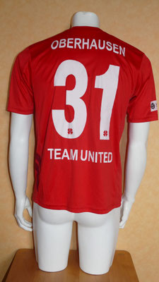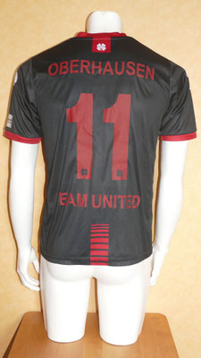 Hier sehen wir zwei Trikotsets vom mittlerweile abgemeldeten Team-United. Die Integrationsmannschaft wurde 2020 ins Leben gerufen. Das Ziel des Team-United war es geflüchtete Menschen aus Oberhausen zum gemeinsamen Fußballspiel zusammenzubringen und so über diesen Weg bei der Integration zu helfen. Das Team-United spielte in der Kreisliga C im Fußballkreis Oberhausen und war in der dritten und letzten Saison des Bestehens lange auf Aufstiegskurs in die Kreisliga B.